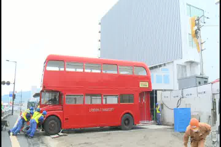 運搬方法はいくつか考えられましたがロンドンバスのエンジン自体を修理し自走させて移動する方法が最終的に決まりました。