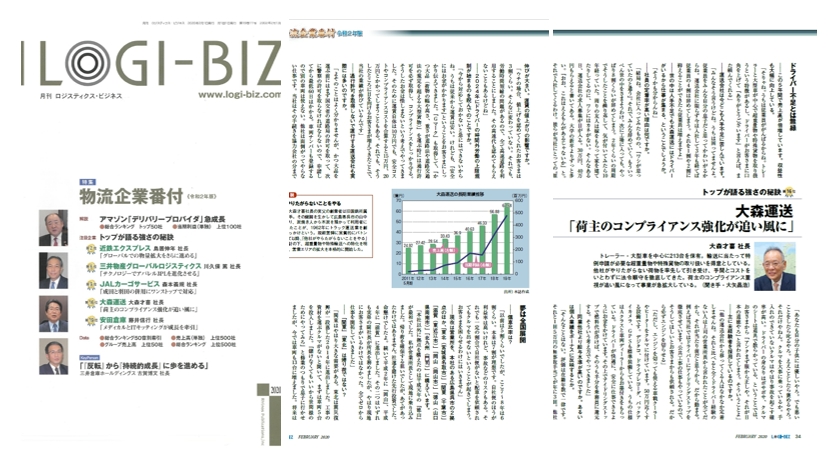令和2年版物流企業番付で全国物流企業の16位に輝き、特集記事が掲載されております。特に特殊車両申請が必要な超重量物等の輸送を手間とコストをいとわない法令順守の徹底が評価されました。