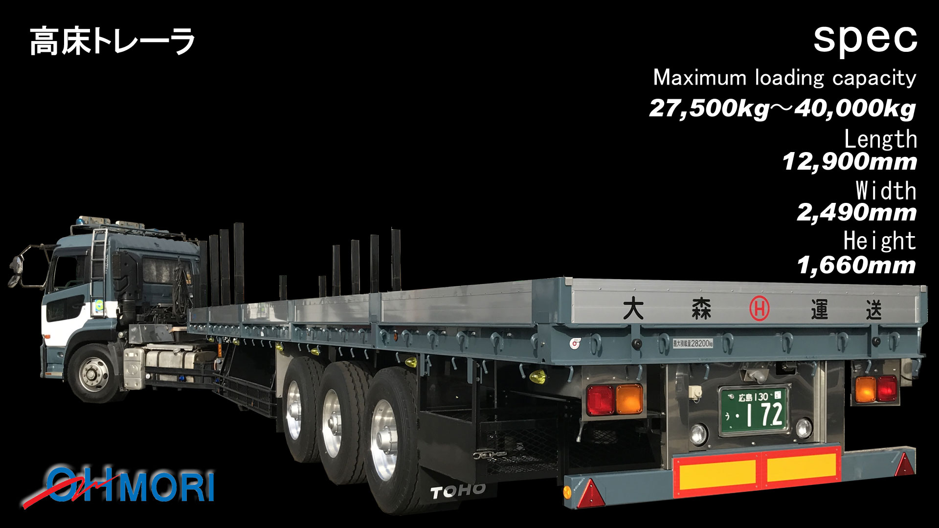 高床トレーラ 40t (エアサス)